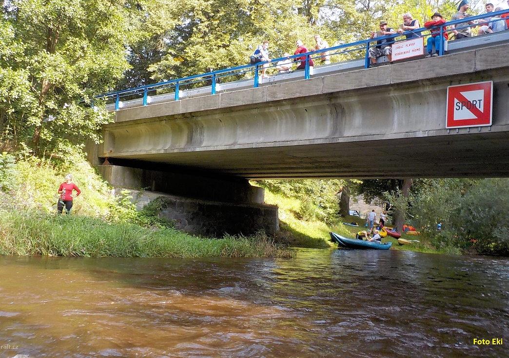 Nalodění v Tuněchodech nad mostem. Vody málo, tak tak na plasty bez bagáže. Pak ale je to už jen lep ...