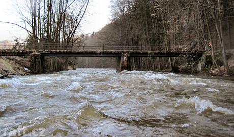 Pod mostem na Zemské bráně, tedy v místech, kde se dá jedině před následujícím těžkým úsekem přistát ...