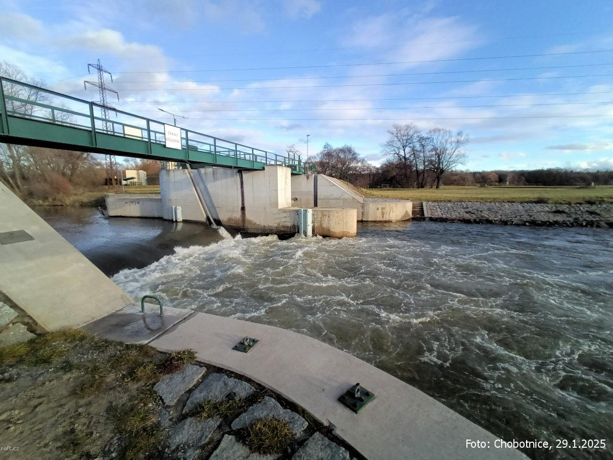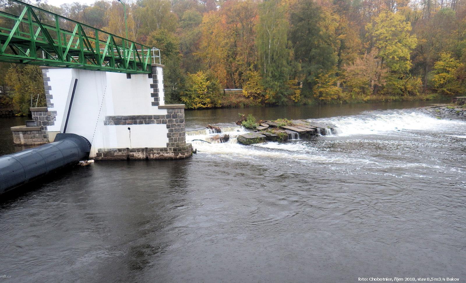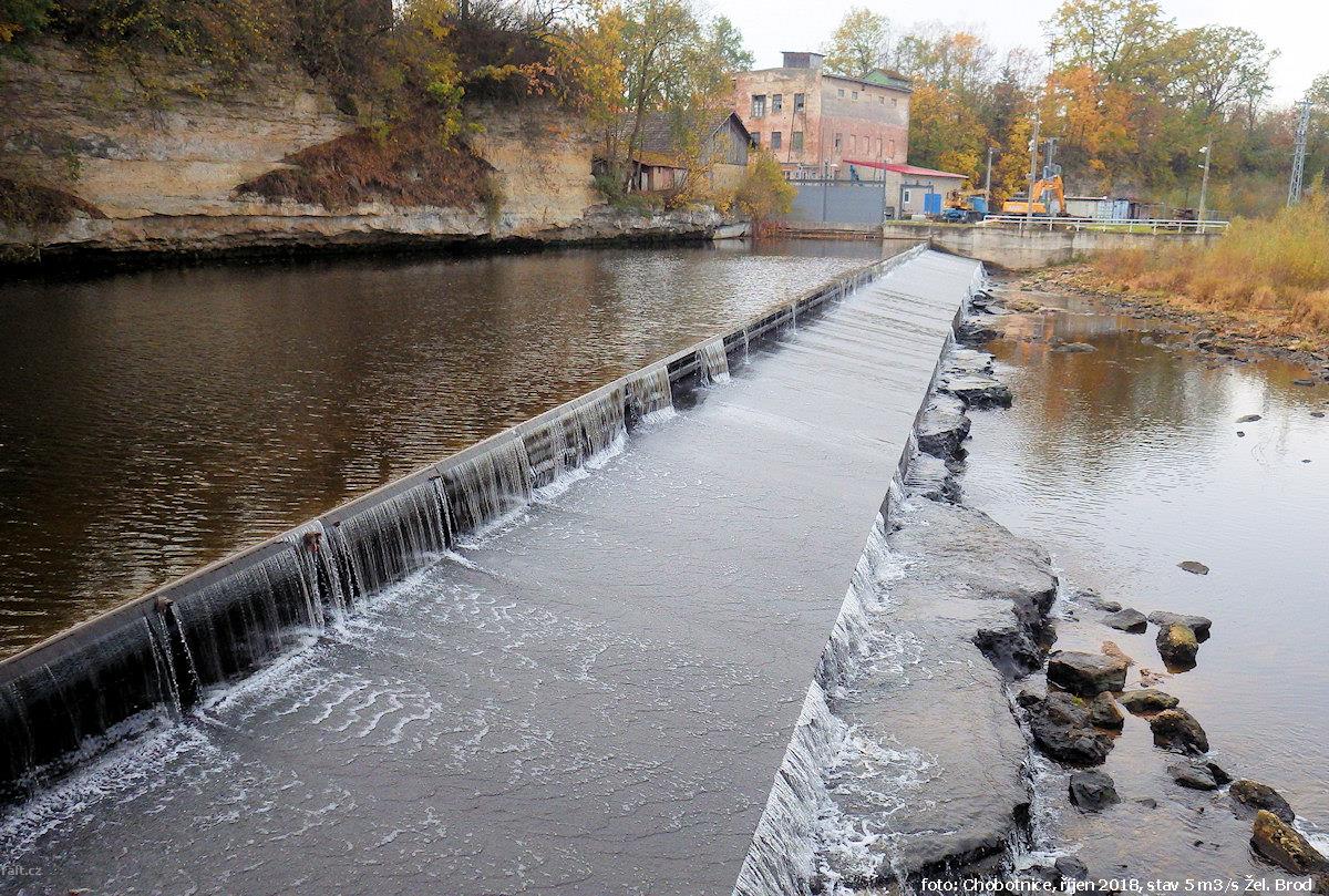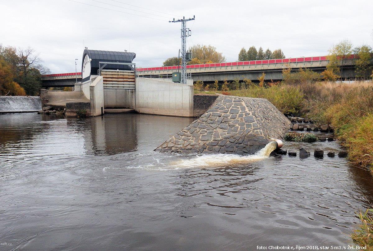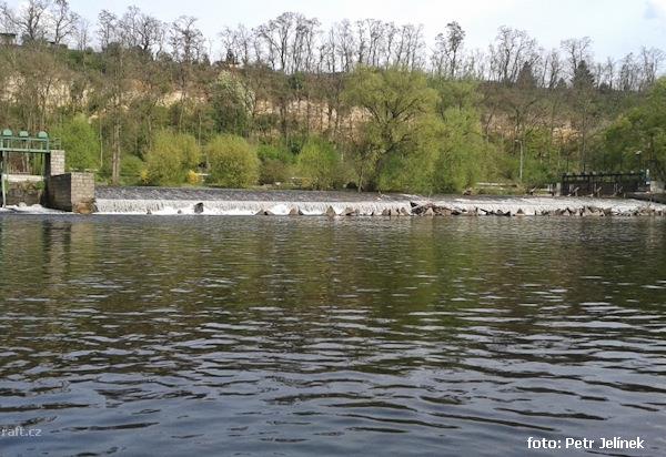 Na jezu Otradovice probíhají jakési stavební práce. Podjezí je zůženo zásypem, díky čemuž je válec p ...