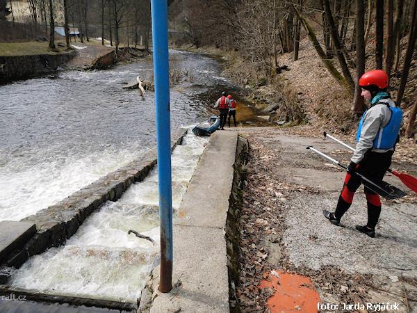 První velká peřej z Riegrovky (vždy prohlednout) s úvodními velkými balvany je zaterasana kládami. ...