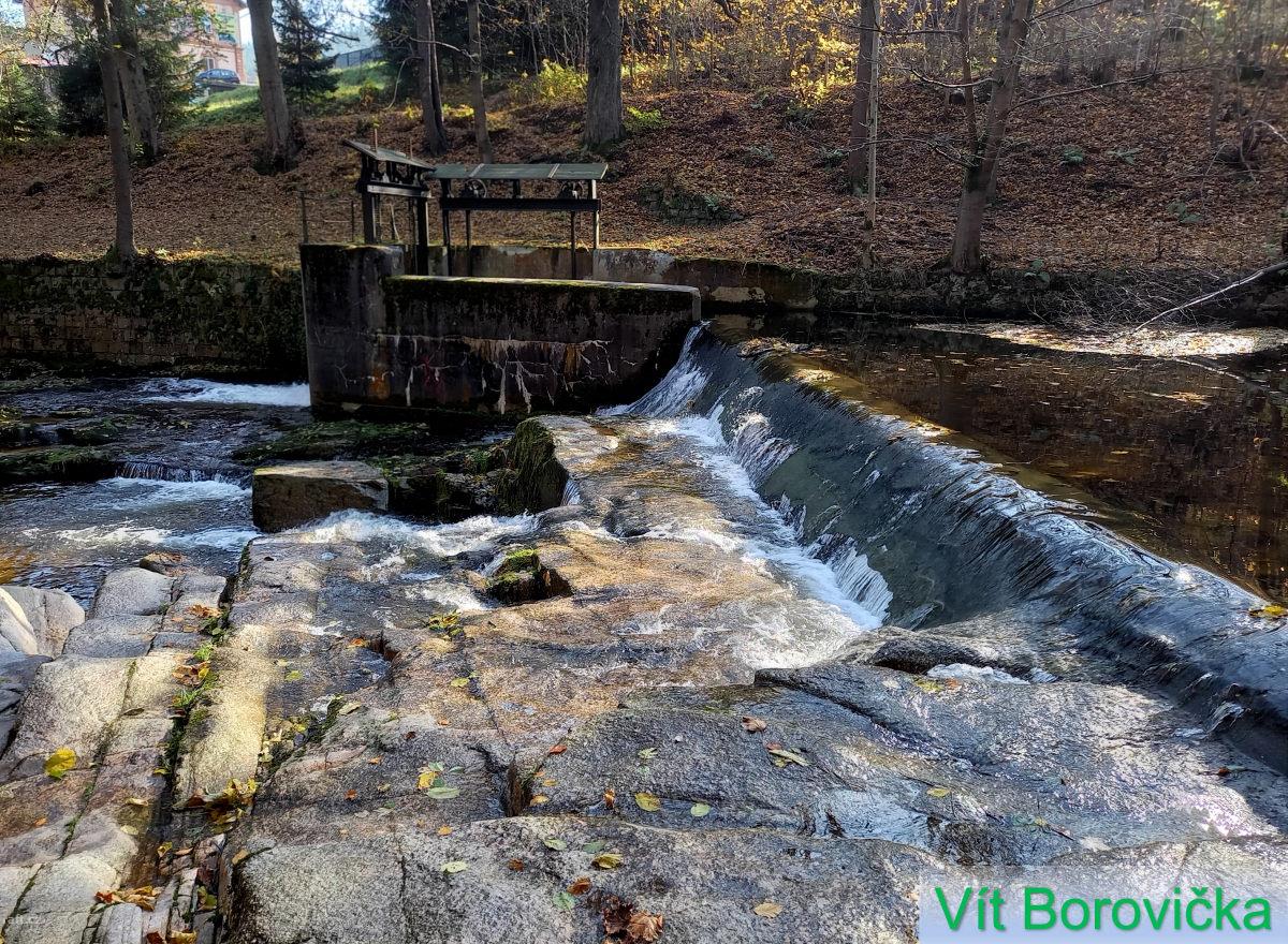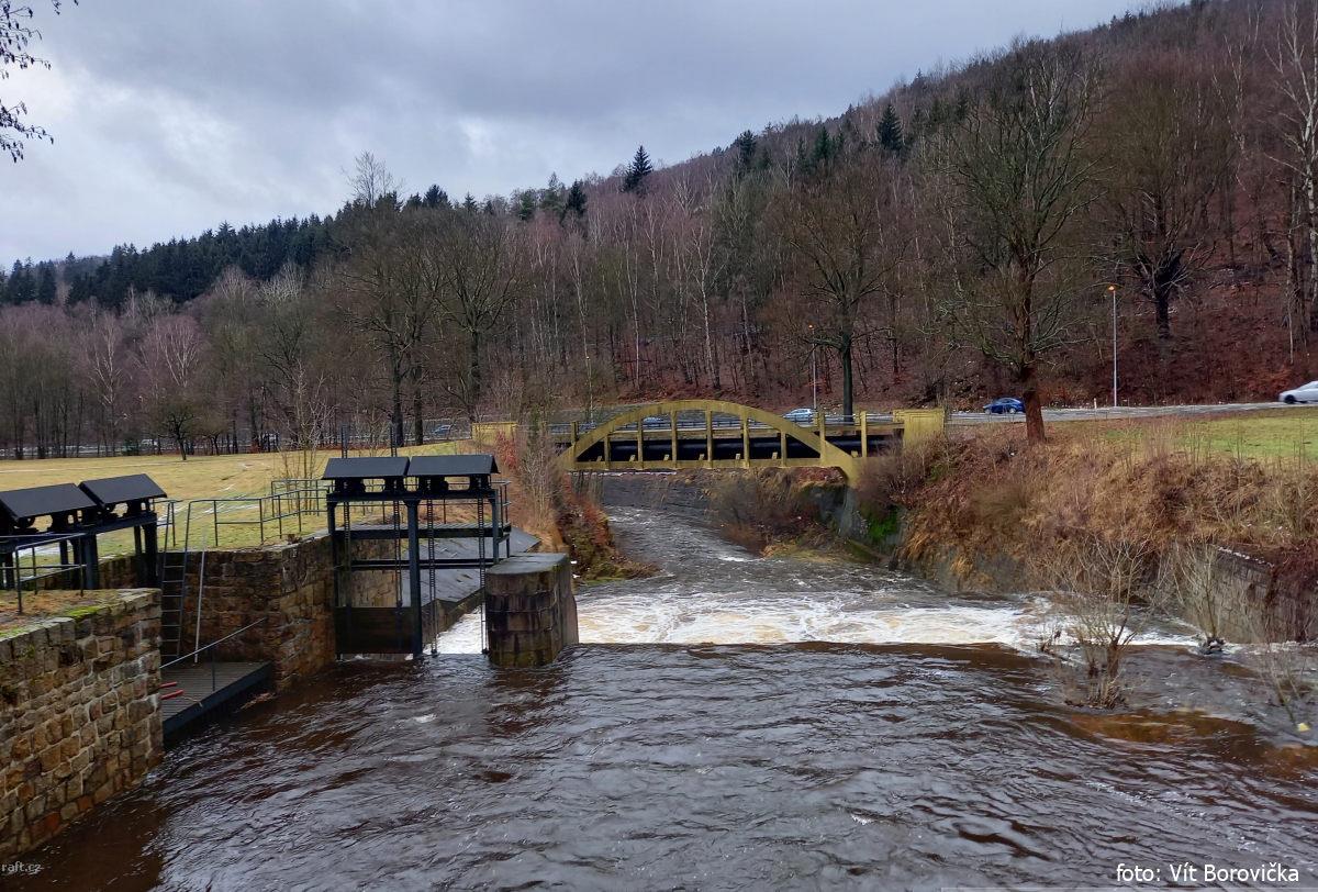 r.km 16,3 Vyústění náhona od jezu v Tanvaldu