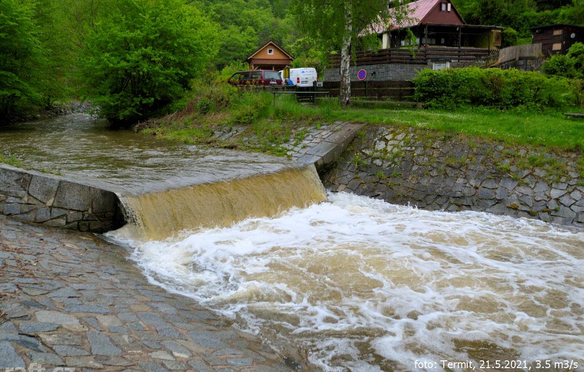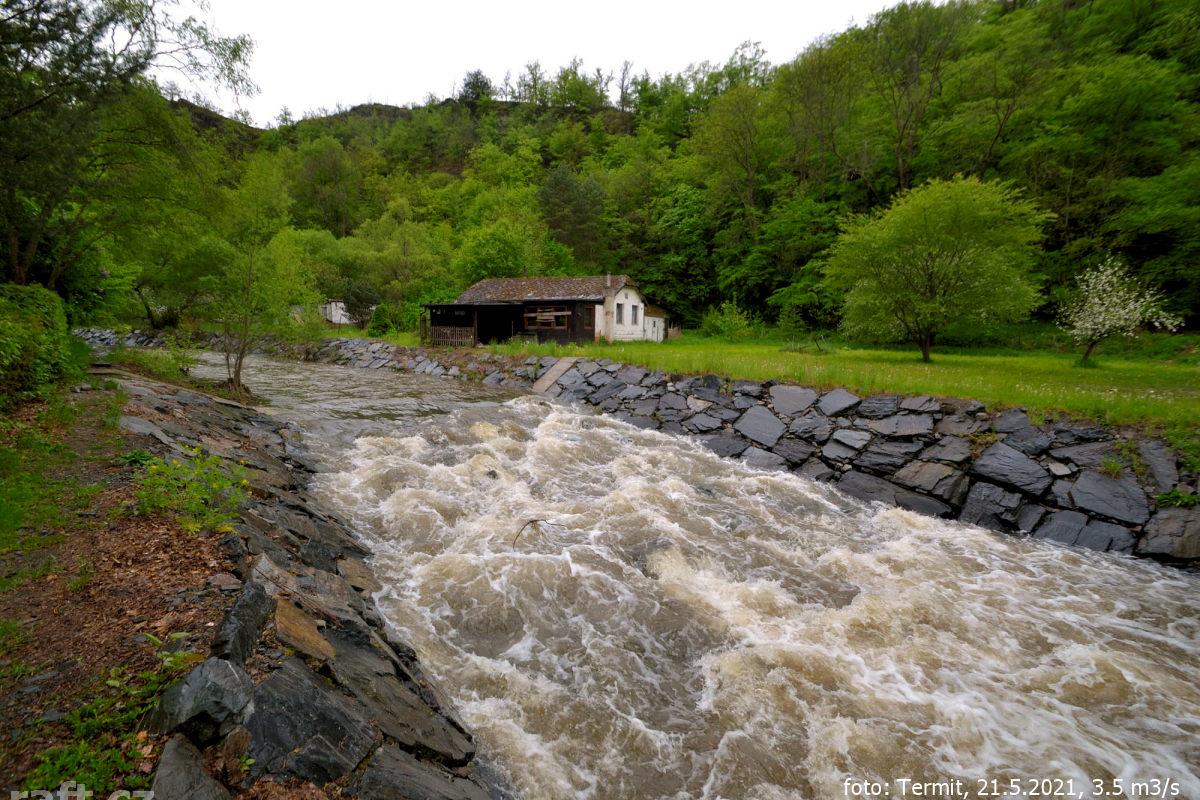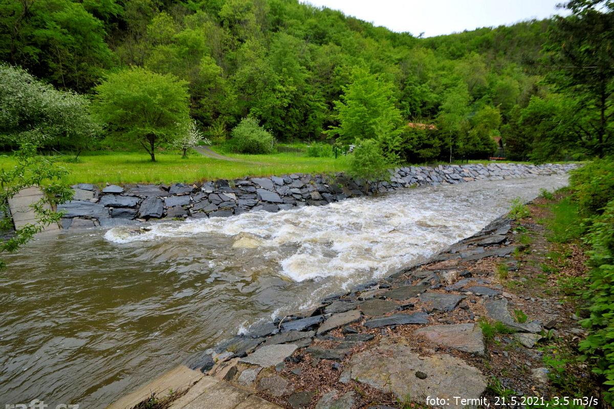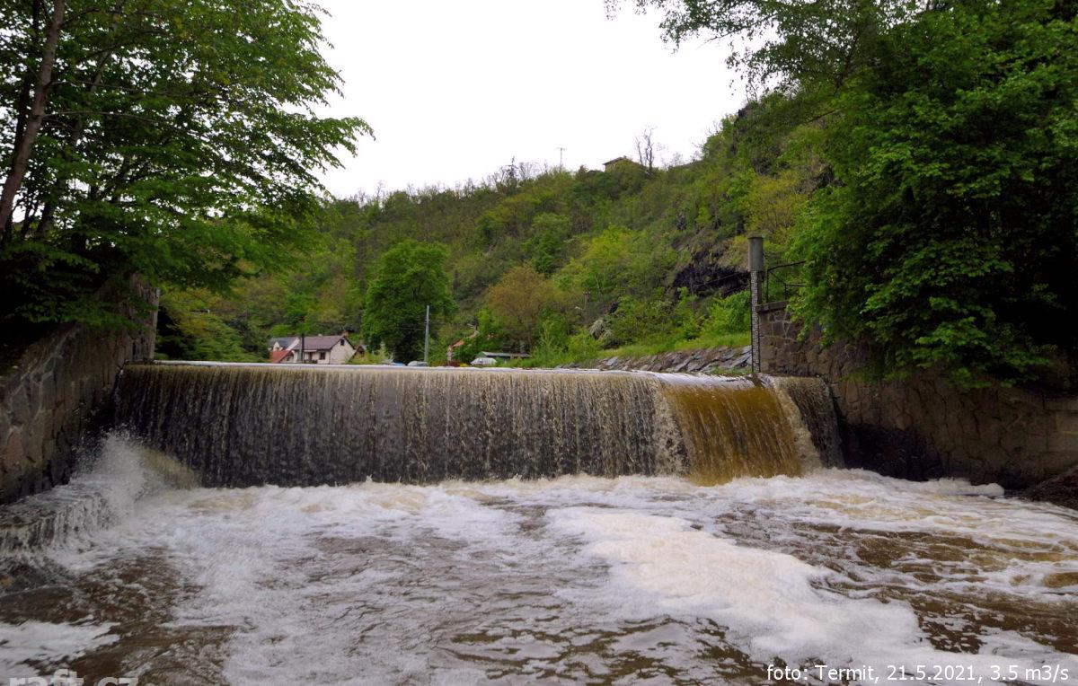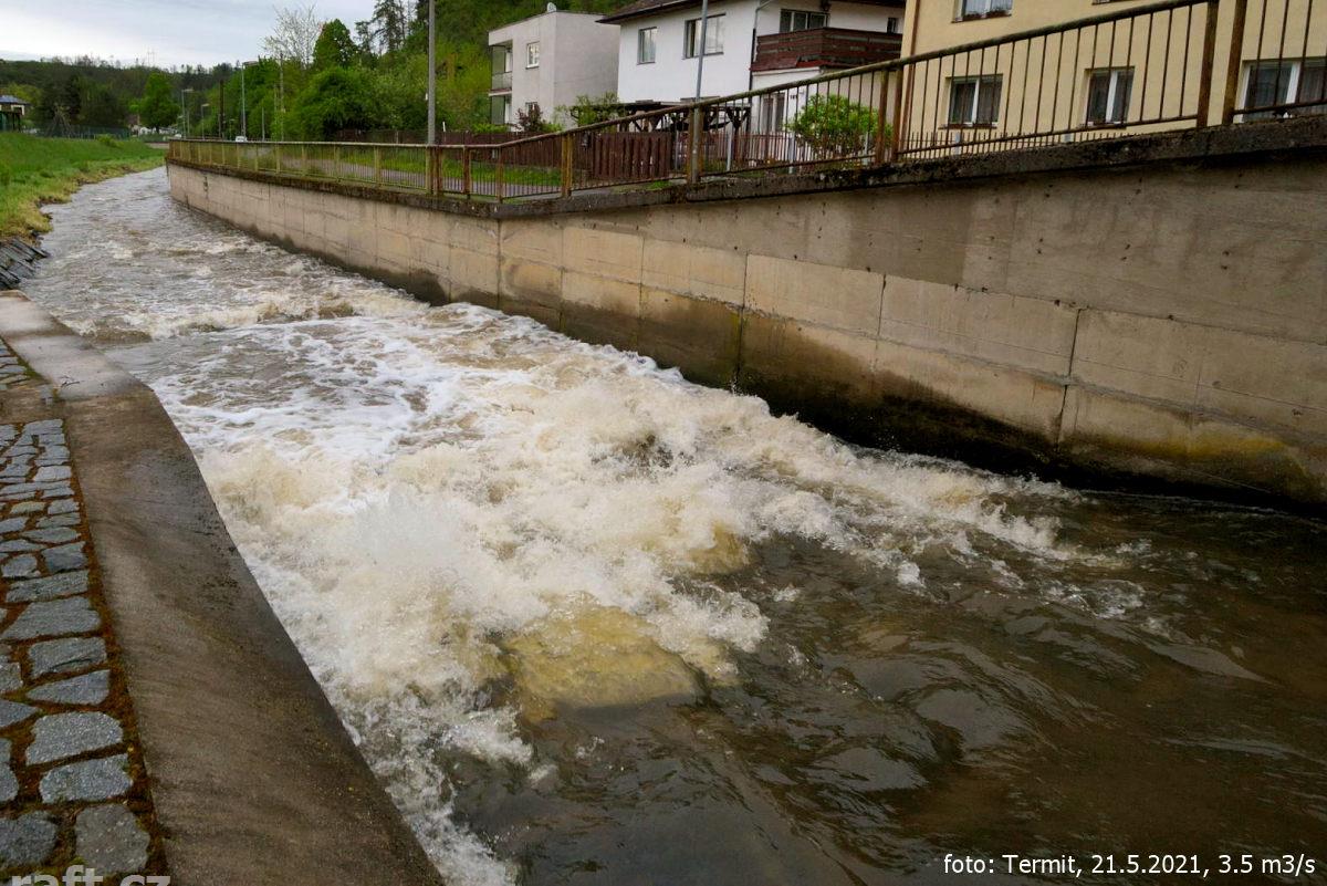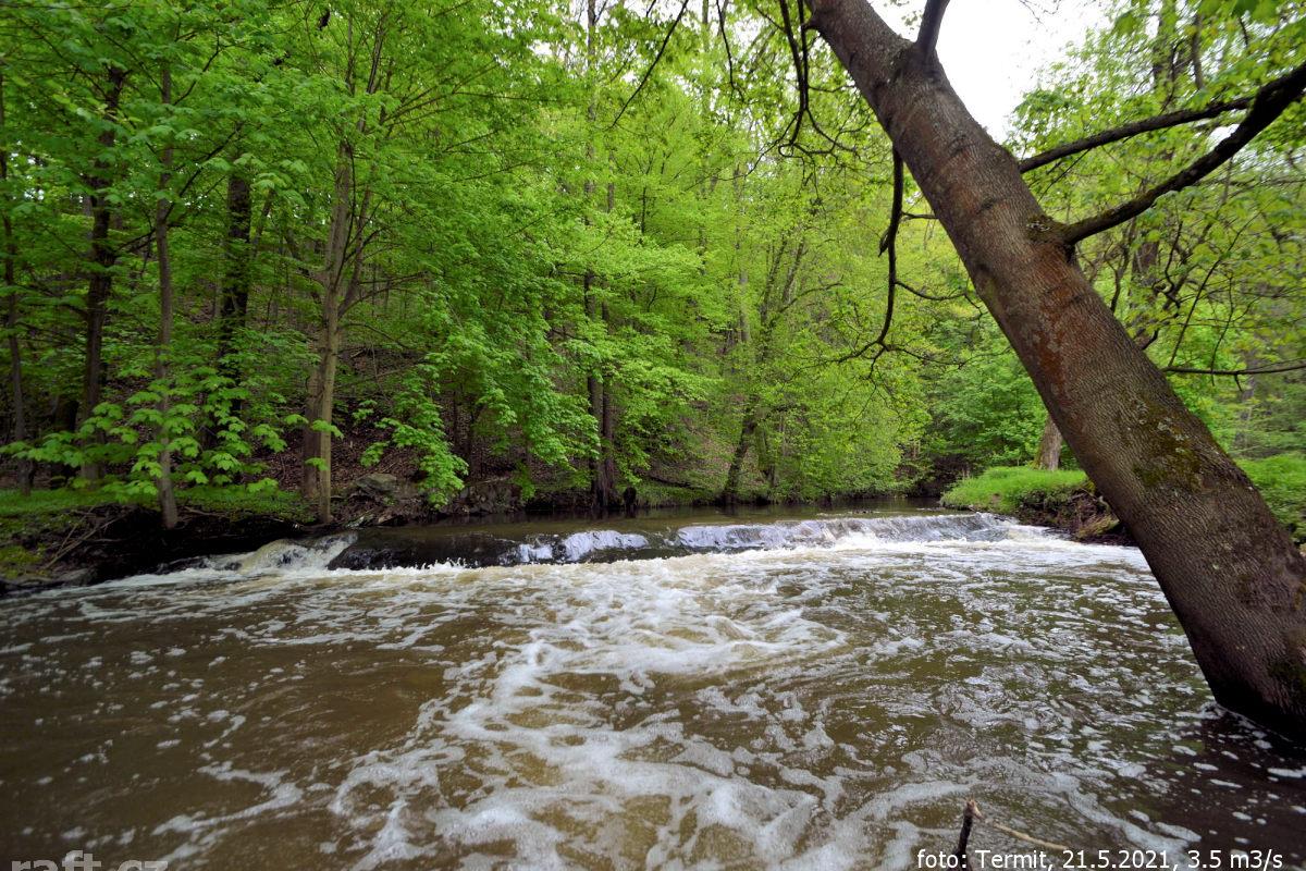 Splutí z Knína za 95 cm vyloženě nebezpečné, popadané stromy a náplavy. Neprůjezdné jen dvě lávky, n ...