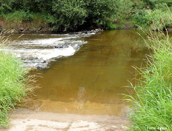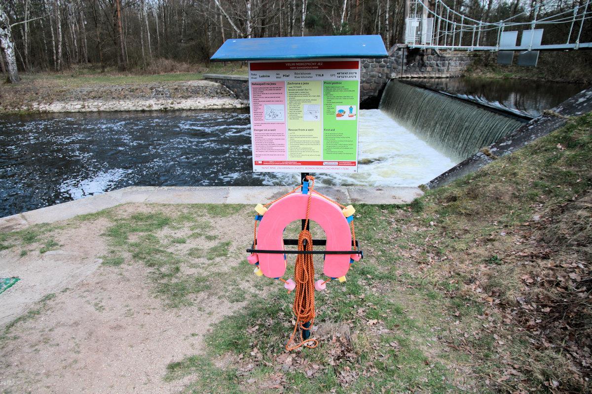 Pozor na jezu Benešův mlýn (36,7 km): neprůjezdná propust!