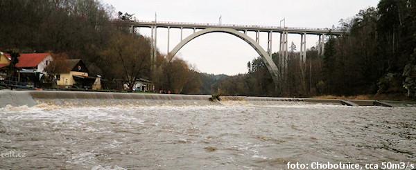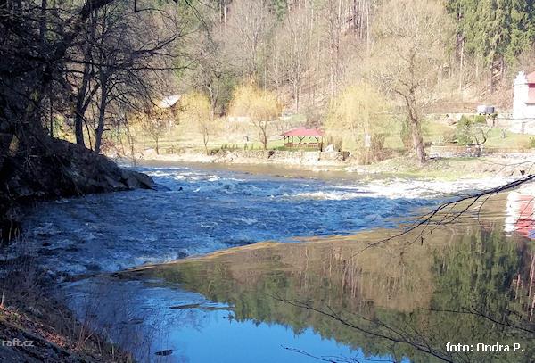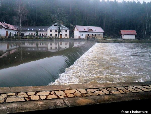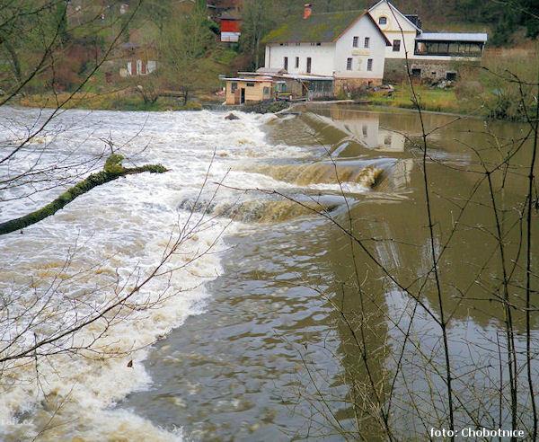 r.km 35,6 Jez Kvěchův mlýn při 25 m3/s v Klenovicích