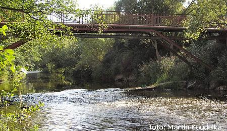 Pozor na ministupeň rozparovač v Tachově těsně za pěším mostem u Vodní ul. ř.km 90,6. Uprostřed jazy ...