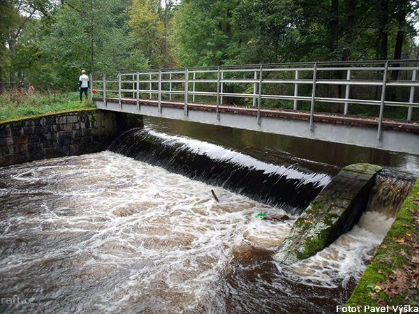 r.km 49,7 provalený jez a 50m peřej