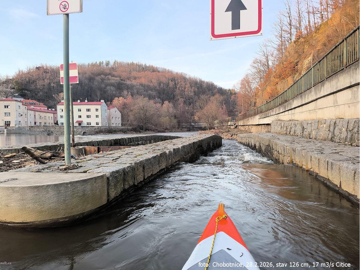 r.km 241,3 Hradební jez, nutno kolejdovat vlevo až pod vyrovnávací jez 08/2024
