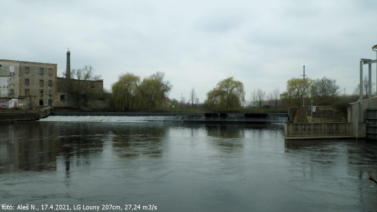 r.km 54,0 Jez Jiráskovy mlýny, 18.4.2021, 29 m3/s na LG Louny