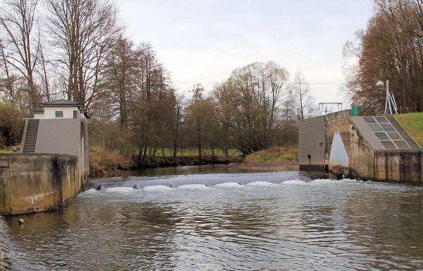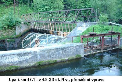 Přestavuje se jez na km 41,8 Bohuslavice nad Úpou. Elektrárna bude vlevo, přenášet asi půjde jen vpr ...