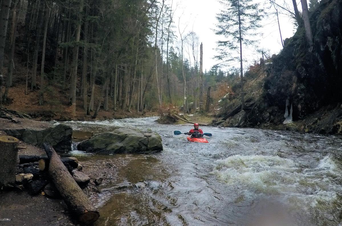 V úseku 1km nad soutokem s Říčkou je několik padlých stromů a zátaras ze stromů a klacků. Přenášení ...