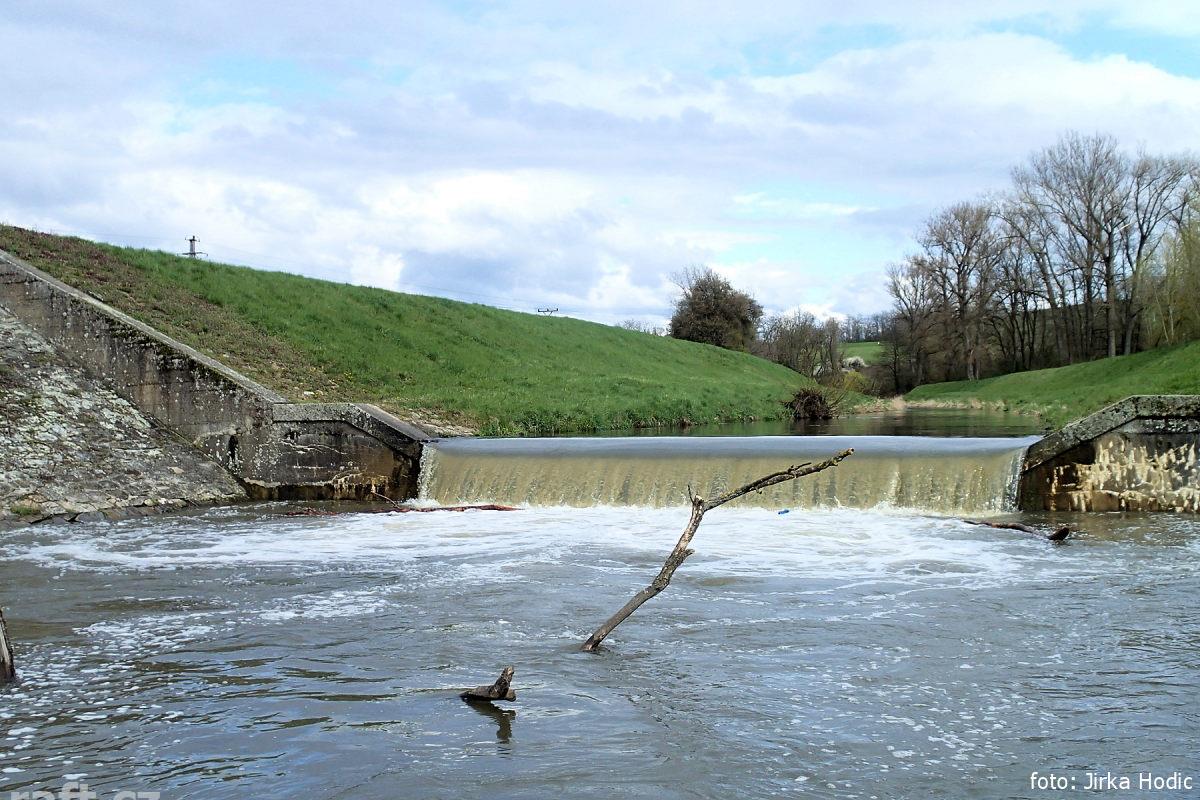 Olšava (16.04.2016 o.l.) Splut úsek z Uh. Brodu po jez u obce Vésky. Stav vodočtu LG Uh. Brod: 104 c ...
