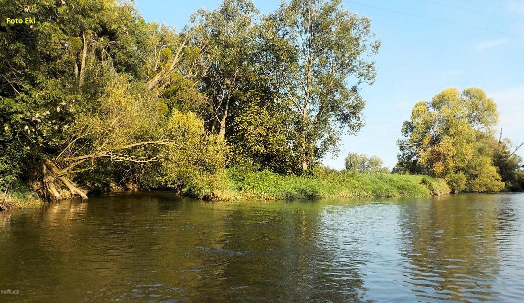 Cca 500 m pod jezem v Kunově je přes řeku natažený špatně viditelný drát - zcela bez označení (vprav ...