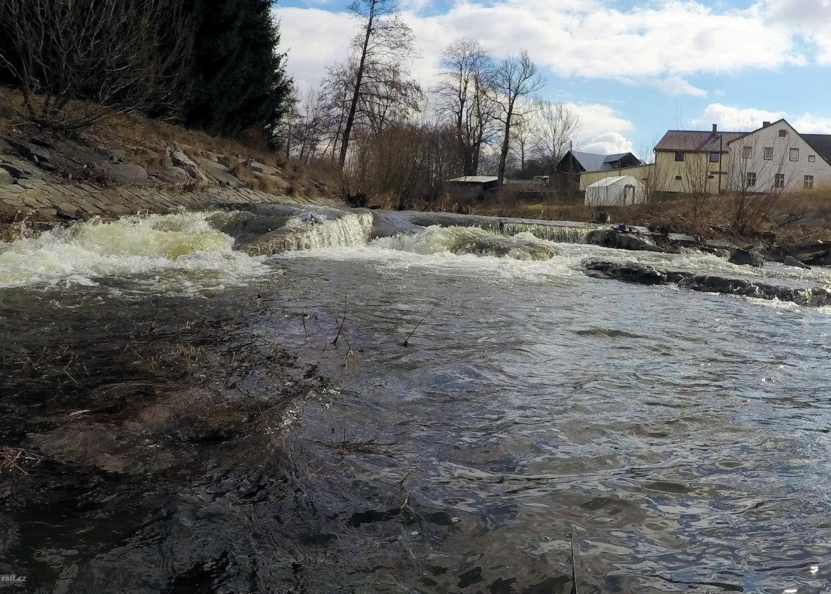 r.km 160,1 Jez s rybím přechodem, 5.3.2019, 2,2 m3/s v Miedzylesie