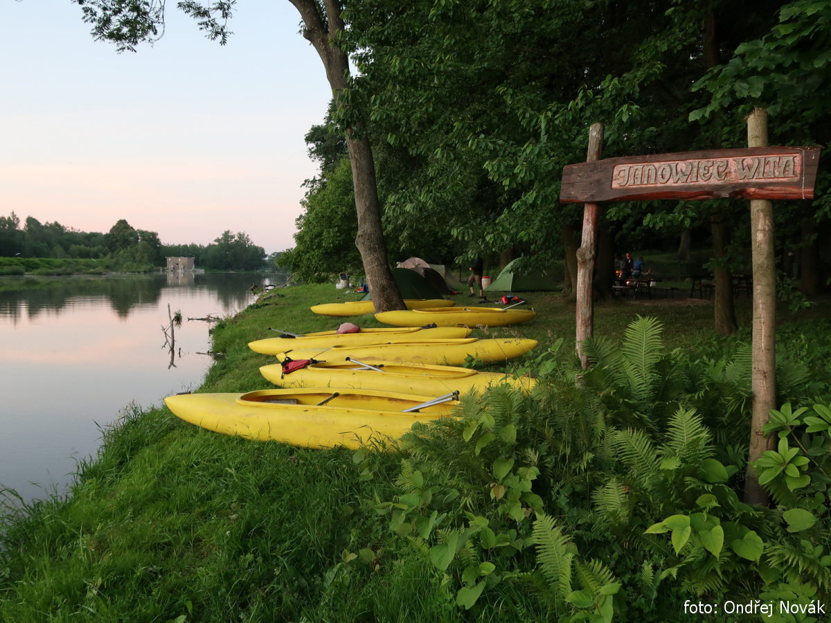 Bielice 400 m prawo, restauracja bufet kościół 600 m prawo, (z řeky není obec vidět, zeptat se všude přítomných rybárů)