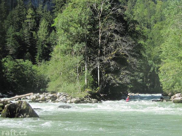 08.08.11 Enns: V několika kamenech závalu - peřeje IV+ před vysedáním Weissenbacht, jsou kovová oka. Je to v té spo ... více