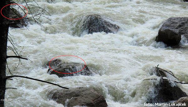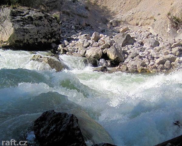 V několika kamenech závalu - peřeje IV+ před vysedáním Weissenbacht, jsou kovová oka. Je to v té spo ...