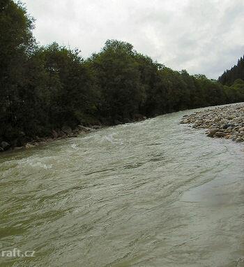 Za vyšší vody (my jsme to jeli v červenci po dešti) se dá nasedat pod soutěskou pod Annabergem. Stýk ...