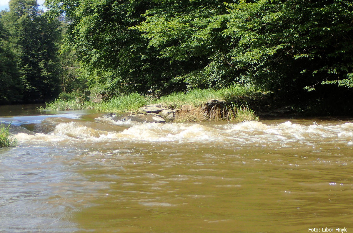 zapora przenosić lewo młynówka prawo, Haidlmühle (dlouhé přenášení vlevo, případně zkusit přetáhnout přes jez)  2,3 km |