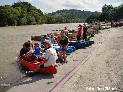 Dunajec je široká peřejnatá řeka, kterou nezastavují téměř žádné jezy a podle toho vypadá i rychlost ...