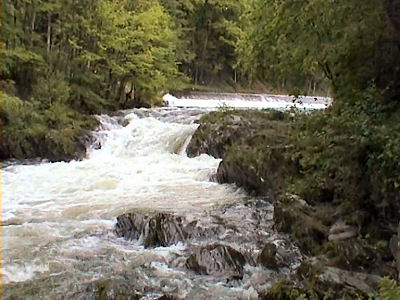 Jednou jsem to jel, když bylo méně vody, a to se kohout nekonal. Usoudili jsme, že to bude lepší vlevo. Honza si najel zprava nalevo a bylo to OK. Já jsem lišácky volil celý nájezd při levém břehu. Těsně před dropem však byla jáma, která mě úplně zastavila. Na hraně jsem neměl žádnou rychlost (jel jsem na Wigu). Ještě jsem párkrát zabral a vletěl do bílé stěny pod skokem. Když jsem vyeskymoval, seděl jsem bokem ve válci čelem k levému břehu. Pak jsem začal přemýšlet, co s tím. Seděl jsem v lodi a pokusil se odcouvat dozadu k pravému břehu. Cestou bylo pár eskymáčků. Při posledním mě proud hlavou dolu vypláchl a poslal do vracáku vpravo. Voda byla krásně průhledná a tak jsem mohl vidět, že mě to stěhuje zase zpět do vývaru. Do válce se mi už nechtělo, a tak jsem se rozhlížel kolem sebe (s hlavou stále ještě pod vodou), čeho bych se chytil. Žádný z velkých šutrů však nebyl na dosah. Probral jsem se a řekl si, že přece mohu eskymovat a odjet. Udělal jsem to a bylo to OK.